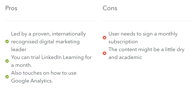 The course is great for beginners who want to learn more about the platform itself, however, it is very top level. Knowing about the platform is one thing, but knowing how to use it effectively and strategically is something different altogether, and for that, you need to look beyond this course. For more information, they also have a great YouTube channel to learn from.
