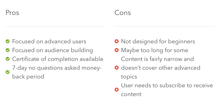 This course has a fairly narrow focus, honing in on different ways that you can expand your audience types. This means that many other advanced topics are not included. However, for many advanced users getting deep knowledge in one area will be very beneficial.